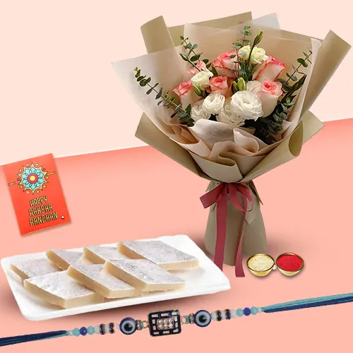Unique You are Always Special Premium Bouquet with 250 Kaju Katli and Rakhi