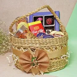 Surprise your brother with a perfect fusion of elegance and festivity through this specially curated Rakhi gift box. It includes a beautifully designed Rakhi (Design Code: ADERKD1203), Yardley Royale Perfume (50ml), Urbane Body Spray (150ml), and the refreshing Ustraa Sea Minerals Soap (100g). A Toblerone chocolate bar (100g) adds a sweet treat to the mix, while the Roli Chawal Thali ensures the ritual is celebrated in full spirit. Everything is neatly packed in a Signature Box, making it a luxurious and heartfelt Raksha Bandhan gift.