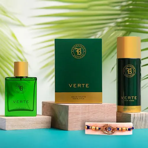 Make your brothers Raksha Bandhan extra special with our Brothers Special Rakhi Gift Hamper. This meticulously curated set includes everything to keep him feeling pampered and loved. The Verte Eau De Parfum (100ml) provides a lasting, refreshing fragrance perfect for any occasion. Alongside, the Verte Perfumed Body Deodorant ensures he stays fresh throughout the day. Also included is a traditional Rakhi that symbolizes your loving bond. Elevate your Raksha Bandhan celebration with this perfect mix of fragrance and tradition, creating a memorable experience for your brother.