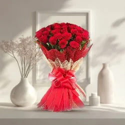 • Eye Catching Bouquet of Fresh Red Color Roses...
