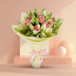• Brilliant Bouquet of White Lilies N Pink Carnation...