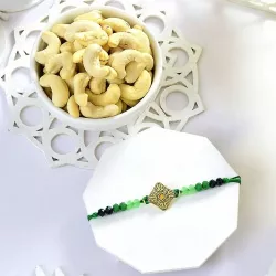 Embrace the joy of Raksha Bandhan with a beautiful traditional rakhi, paired with a heartfelt good wishes card and Roli Chawal. Indulge in delicious Besan Laddus from Melbourne, complemented by crunchy almonds and cashews for a perfect festive touch.