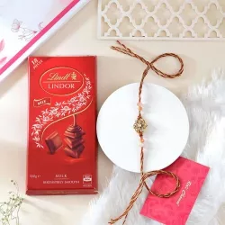 Celebrate the festive spirit with this unique Rakhi that features the protective Evil Eye. This set comes with a Good Wishes card and two delectable Snickers bars, making it a delightful gift for your sibling.